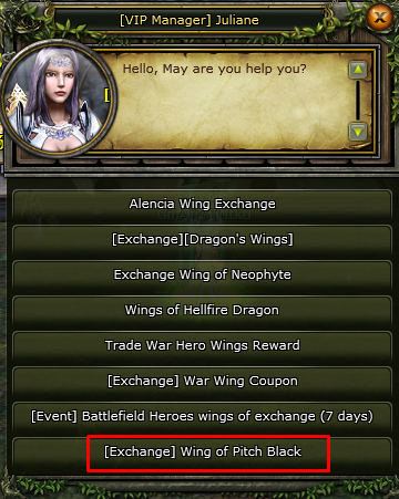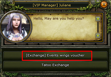 To extract a wing, first go to the [VIP Manager] Juliane NPC and click on the (Exchange) Wings and Tattoos option. Then select the wing you obtained and extract it with the desired stat.