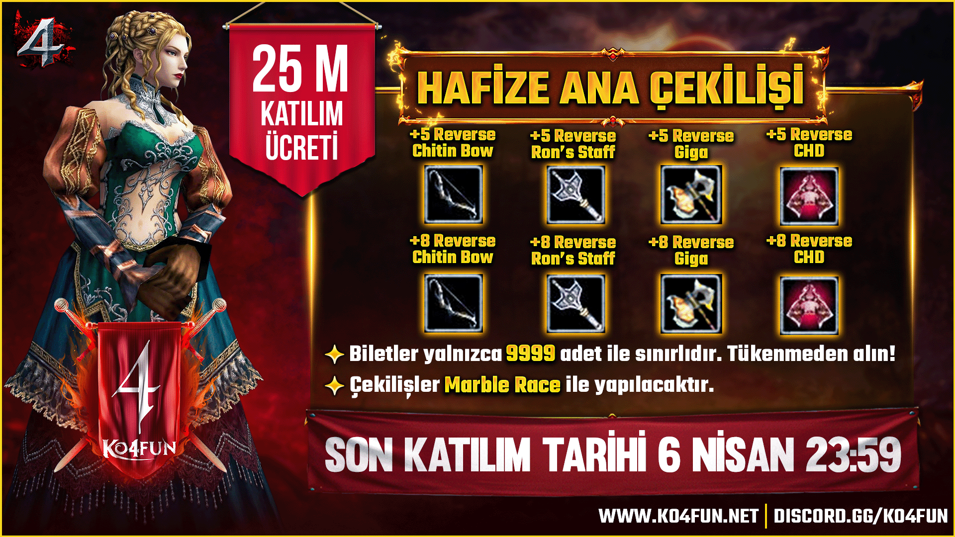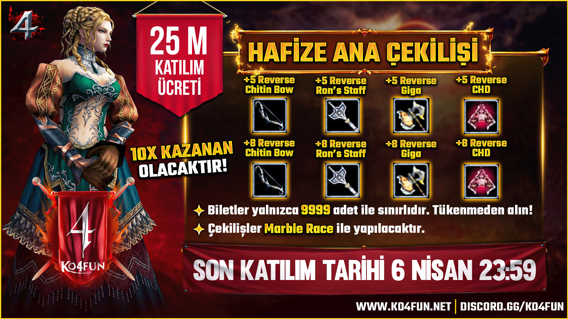 Heyecanla beklenen yepyeni bir etkinlik ile karşınızdayız! Hem oyun içi heyecanı zirveye taşıyacak hem de sürpriz ödülleriyle yüzünüzü güldürecek KO4FUN Piyango Etkinliği başlıyor!